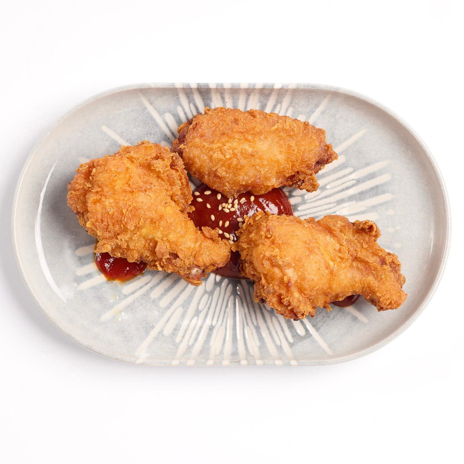 Alitas de pollo fritas extra crujientes acompañadas de salsa kétchup coreana sabor agripicante.