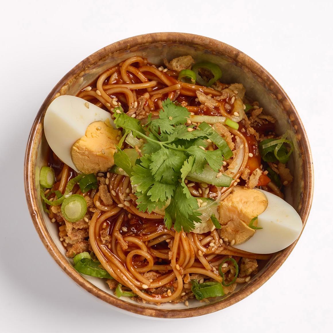 Explosión de sabor: fideos fríos con un toque picante que despierta los sentidos.