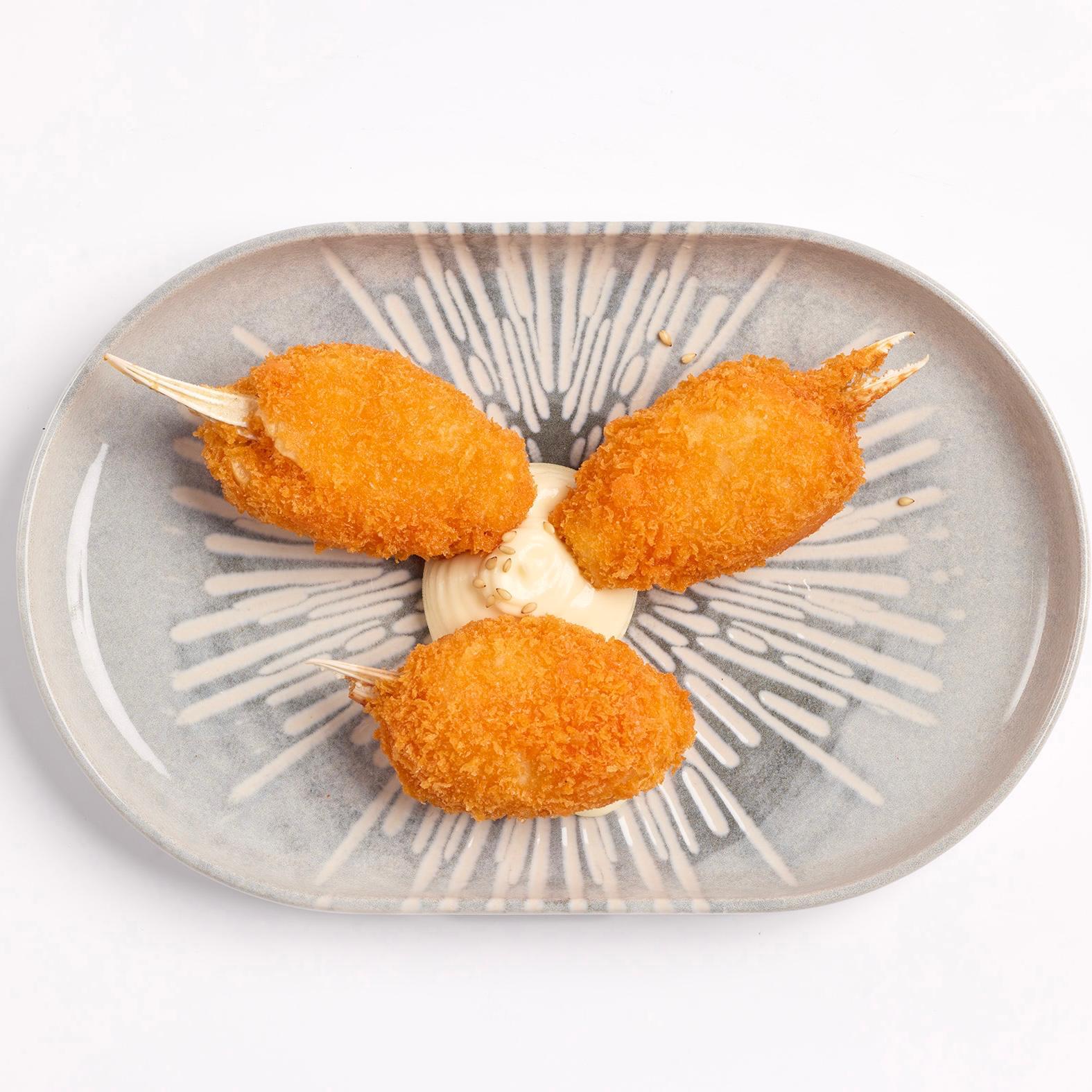 Delicias de cangrejo fritas servidas son su propia salsa.