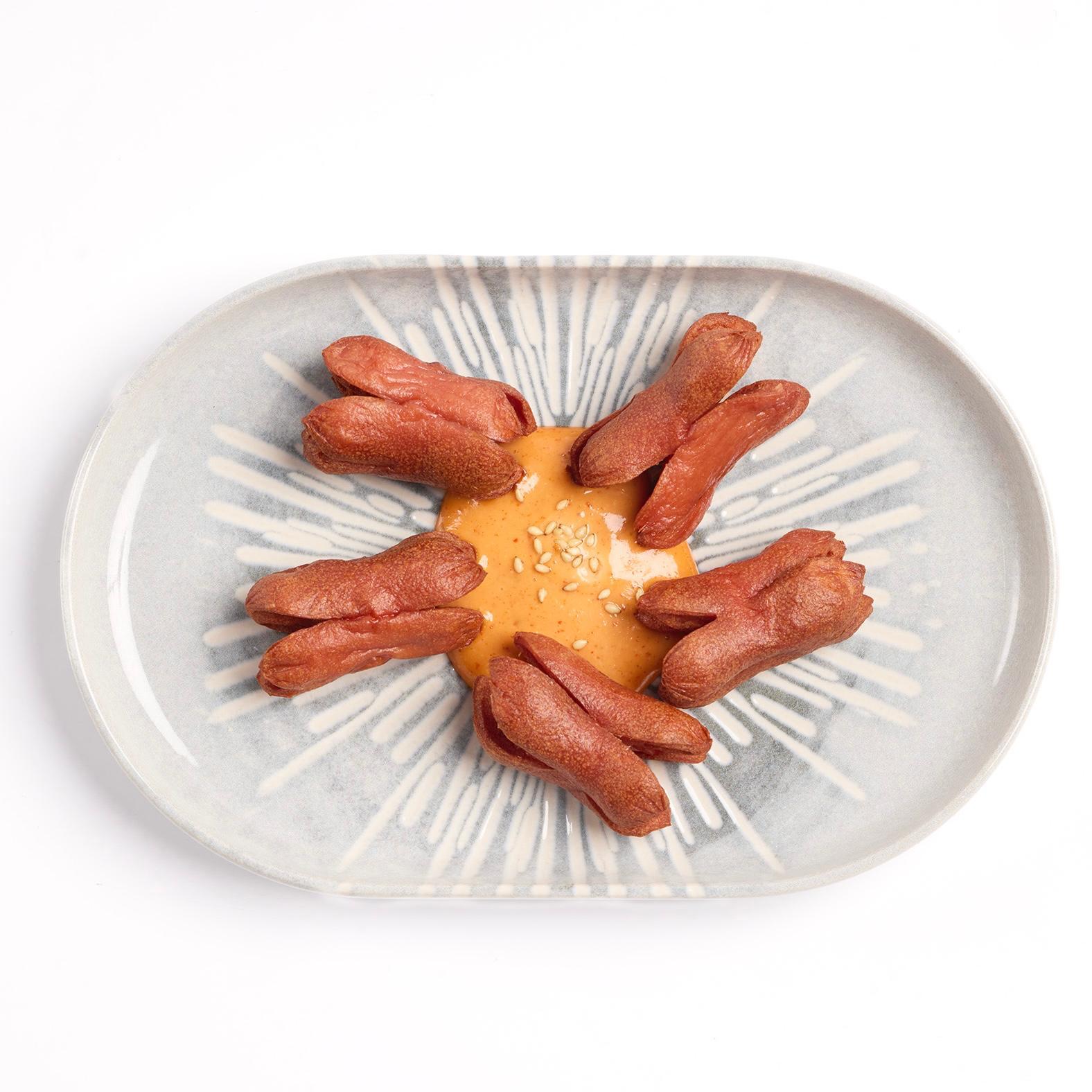 Empanadillas tradicionales coreanas rellenas de ternera picada, soja de algas y vinagre.